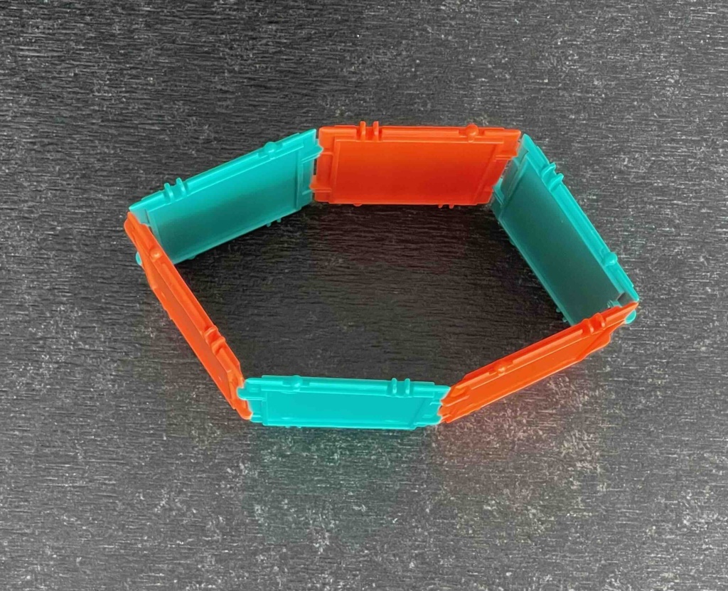 She started out with a closed chain of 6 rectangles, like the one shown below (constructed after the event):