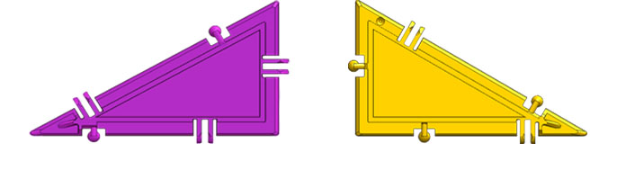 It reminded her of the origami technique of folding heart stents as they are inserted into patients’ arteries. When I saw the shape, all I could think of was how to modify her idea so that the shape actually holds together. She was using only one type of Geometiles 30-60-90 triangle (purple on the left, below), and I knew that the both types in the picture below would be needed.