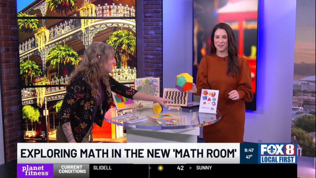 The MathHappens Foundation has been “putting the M in STEM Since 2014”, but in the past year they’ve greatly expanded their reach by establishing Math Rooms in children’s museums all over the United States. The most recent opening of a Math Room took place on November 1, 2025 at the Louisiana Children’s Museum (LCM) in New Orleans. It was such an exciting event that it even got a spot on the local TV station! Have a look— see 3:42 for a mention of Geometiles: